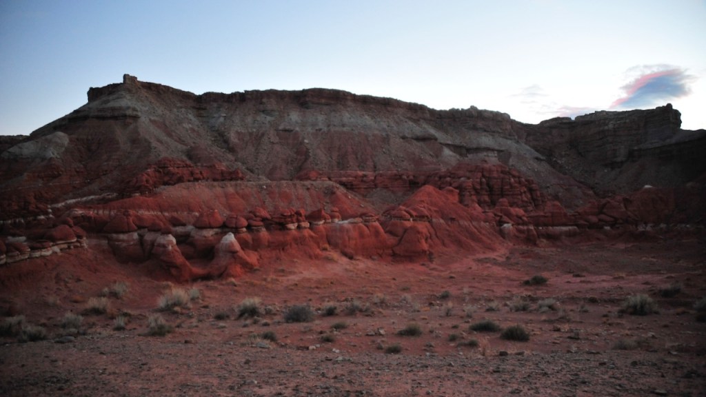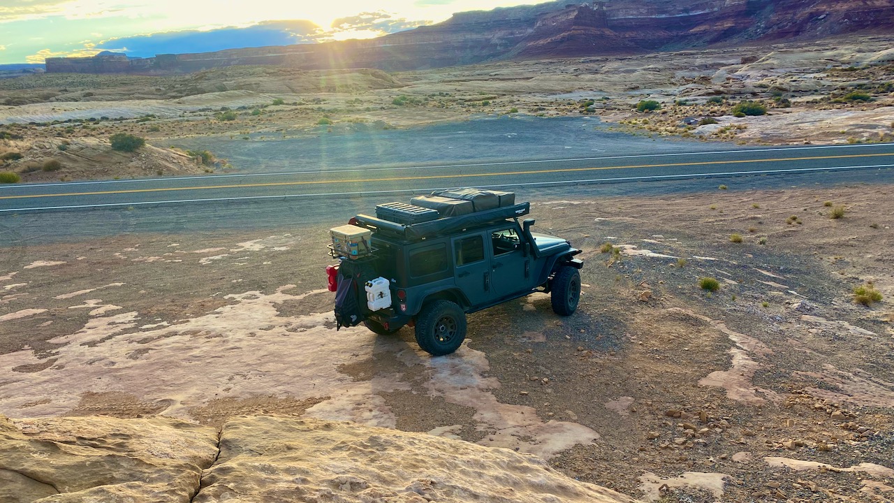 We pulled out of Hanksville with the sun going down. The plan was to drive until we found a suitable remote campsite for the evening. Without any particular destination in mind, we were on the road. Before departing Dukes, we struck up a conversation with a fellow traveler, Stan, from New York City, who was traveling around the region on his BMW Adventure Bike. He told us about the fantastic drive he had along SR95, and we shared some of our favorite routes with him. A new friend was made, and another patch was handed out.