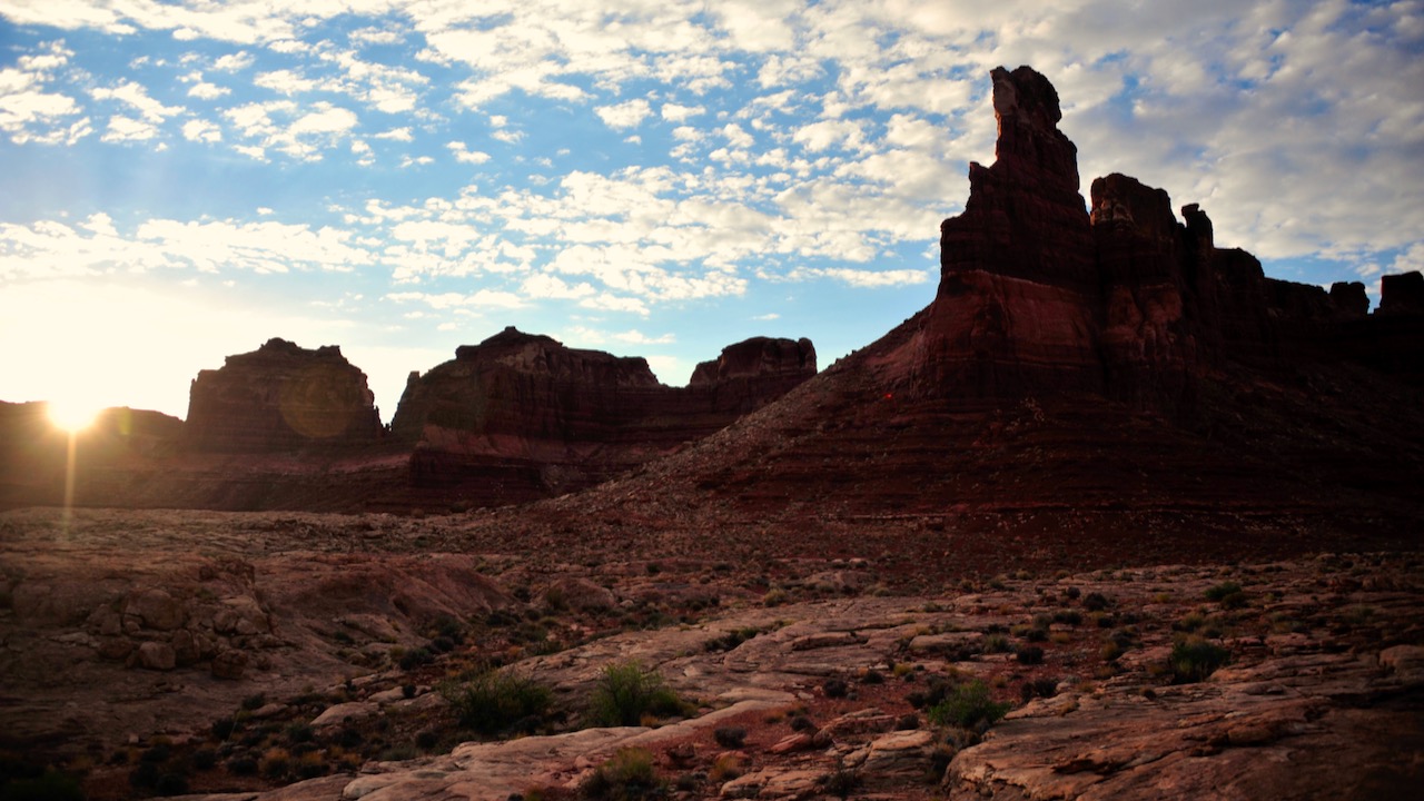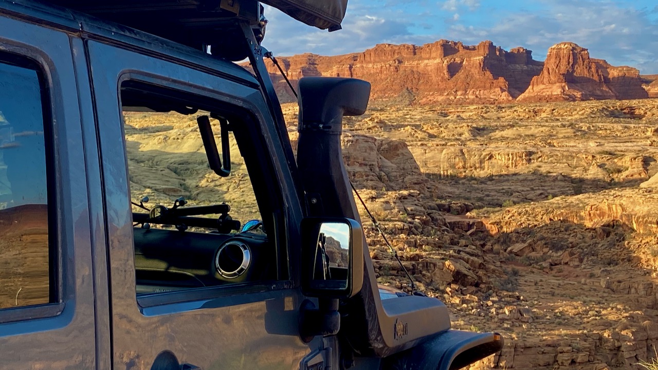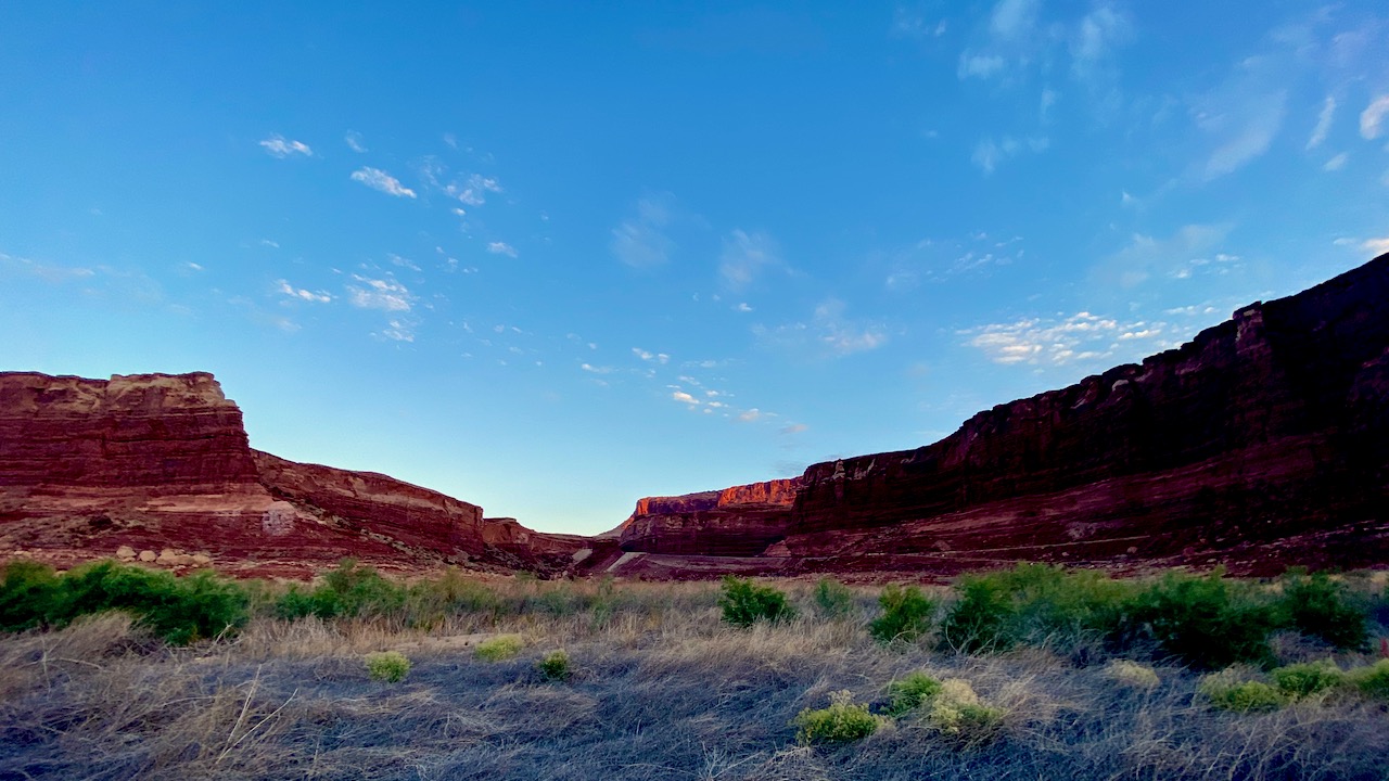 We checked out a few spots along our route on SR95, but nothing was striking our fancy. JD was determined to put us closer to Natural Bridges, our intended first stop the following day, so on we went. The route led us back to where we started in Glen Canyon a few days earlier. We had driven hundreds of miles and gotten nowhere. In the end, we camped in a patch of dirt along the shores of the Colorado River, a mere 95 miles from our campsite two nights ago. The views in the morning were a sight to behold…